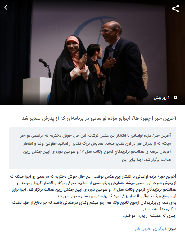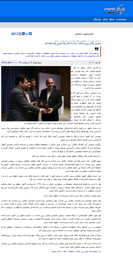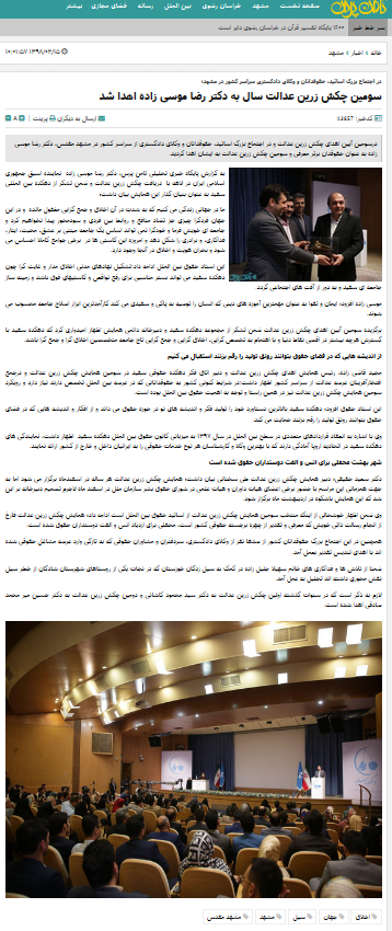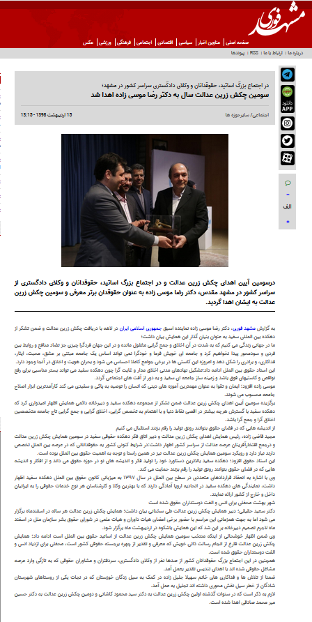 انعکاس خبری اهدای دومین چکش زرین عدالت